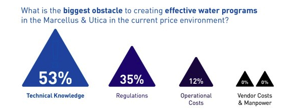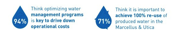 A staggering 94% of poll respondents think optimizing water management programs is key to driving down operational costs while a further 71% of respondents believe it is important to achieve 100% reuse of produced water in the Marcellus and Utica.