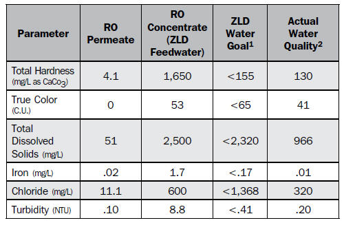The primary components of the ZLD process include lime and soda ash softening, clarification, ultrafiltration (UF) feed system, pressurized UF membrane system, UF backwash and cleaning system, disinfection system, process recycle and recovery system, solids handling system, sludge dewatering system, process and yard piping, electrical systems, and instrumentation and control systems. The table below presents the water quality parameters used to design the concentrate ZLD system.