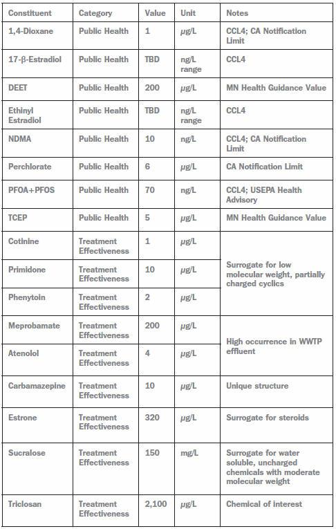 Table 2. SWIFT Research Center Proposed Regulatory Limits for SWIFT Water