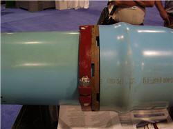 ACE11 marked the tradeshow debut of EBAA Iron's new MEGA-STOP PVC Bell Protection System. Dennis Shumard, product support manager for EBAA Iron and inventor of the MEGA-STOP, explained how the unique design of the system prevents "over-insertion" when assembling pipe joints. Proper installation of push-on joints, facilitated by the mechanism, allows for expansion and contraction of the pipe (thus reducing damaging stresses) and enables simple, visual inspection of the assembled joint.