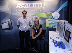 Real Tech's Drew Evans and Melissa Driscoll (pictured) introduced me to the latest addition to the company's line of analytical instrumentation products, the Real Spectrum Analyzer, which is capable of real-time process monitoring and scanning across the whole spectrum of UV and/or visible light. Also on display at the booth: the Real UVT Online Monitor and the Real UV254 Hi-Pure Online Monitor.