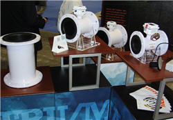 Ian MacLeod, VP of marketing at Master Meter, shared with me some of the company's latest product advancements, namely the Octave Ultrasonic Meter and the Eco-Hybrid meter. According to the company, the Octave offers the lowest known measurement for a commercial and industrial large meter, detecting 1/16 GPM for the 4-in. model (also available in 2-, 3-, 6-, and 8-in. sizes). Also new from Master Meter, shown for the first time at ACE11 (and pictured at right), is the Eco-Hybrid meter. The meter is protected by a metallic exoskeleton, but features a plastic interior that reduces its weight by 15% and prevents water flow contact with metal.