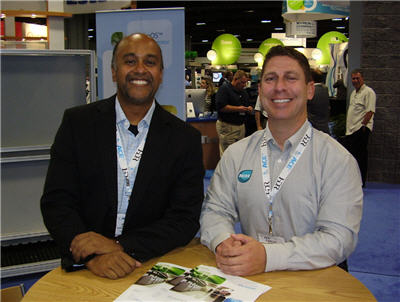 Parkson and MIOX shared booth space at ACE11, on the heels of the big news that they have joined forces to develop the market for on-site generation (OSG) disinfection systems. I met with both companies' CEOs – Zain Mahmood (left) for Parkson and Carlos Perea for MIOX – as they prepared for a reception to celebrate the agreement. As an exclusive distribution partner, Parkson will market and sell MIOX's proprietary hypochlorite and mixed-oxidant systems to municipalities throughout the United States and Canada, as well as six Middle East countries. Perea cited Parkson's strong sales channel and reputation as initiatives for the move, while Mahmood lauded MIOX's green and safe disinfection technology, which was found on display in the form of the MaximOS.