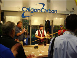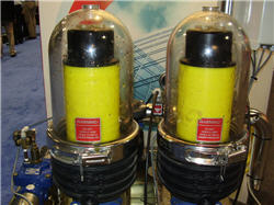 Calgon Carbon had one of the more entertaining booths at the show, as a trick-shot pool performer wowed the crowd with his skills, all the while touting the company's granular activated carbon as a low-cost, environmentally friendly drinking water treatment solution. Besides the billiards play, I also enjoyed meeting with Ralph Franco, sales director for Calgon Carbon's UV Technologies Division, who highlighted the impressive-looking Sentinel UV disinfection system (shown at right) and some recent municipal contract awards it earned for the company.