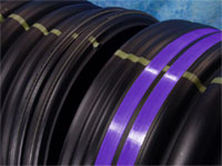 The ADS N-12 Low Head pipe joint, recognizable by its purple branding wrap is a modification of the integral bell-and-spigot joint used in N-12 WT pipe. Longer bells and spigots were introduced to provide increased joint offsets while maintaining watertight performance. Multiple ceramic/polymer wraps are used on the longer bell to provide additional sealing area and ease of joint assembly in field conditions. The spigot has been designed with space for a second optional gasket to provide redundant sealing of the joint. These modifications provide a watertight yet flexible joint that can handle the pressures associated with low head irrigation projects.