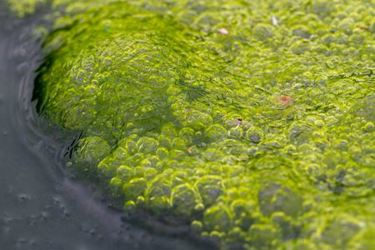an overgrowth of duckweed — a small, fast-growing floating plant often found on stagnant water surfaces. This blocked the sunlight needed for the algae to do their work.