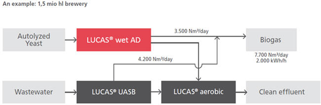 Taking into account sustainability and cost-effectiveness, anaerobic treatment offers the best treatment process for brewery excess yeast: the energy conservation aspect is indeed the main driver in choosing for anaerobic treatment as this solution avoids energy loss during drying and/or dewatering of the yeast, while biogas is produced during its anaerobic treatment process.