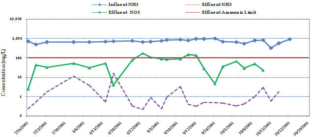 Figure 3. Case Example B: Anoxic/aerobic pilot plant results —indirect discharge