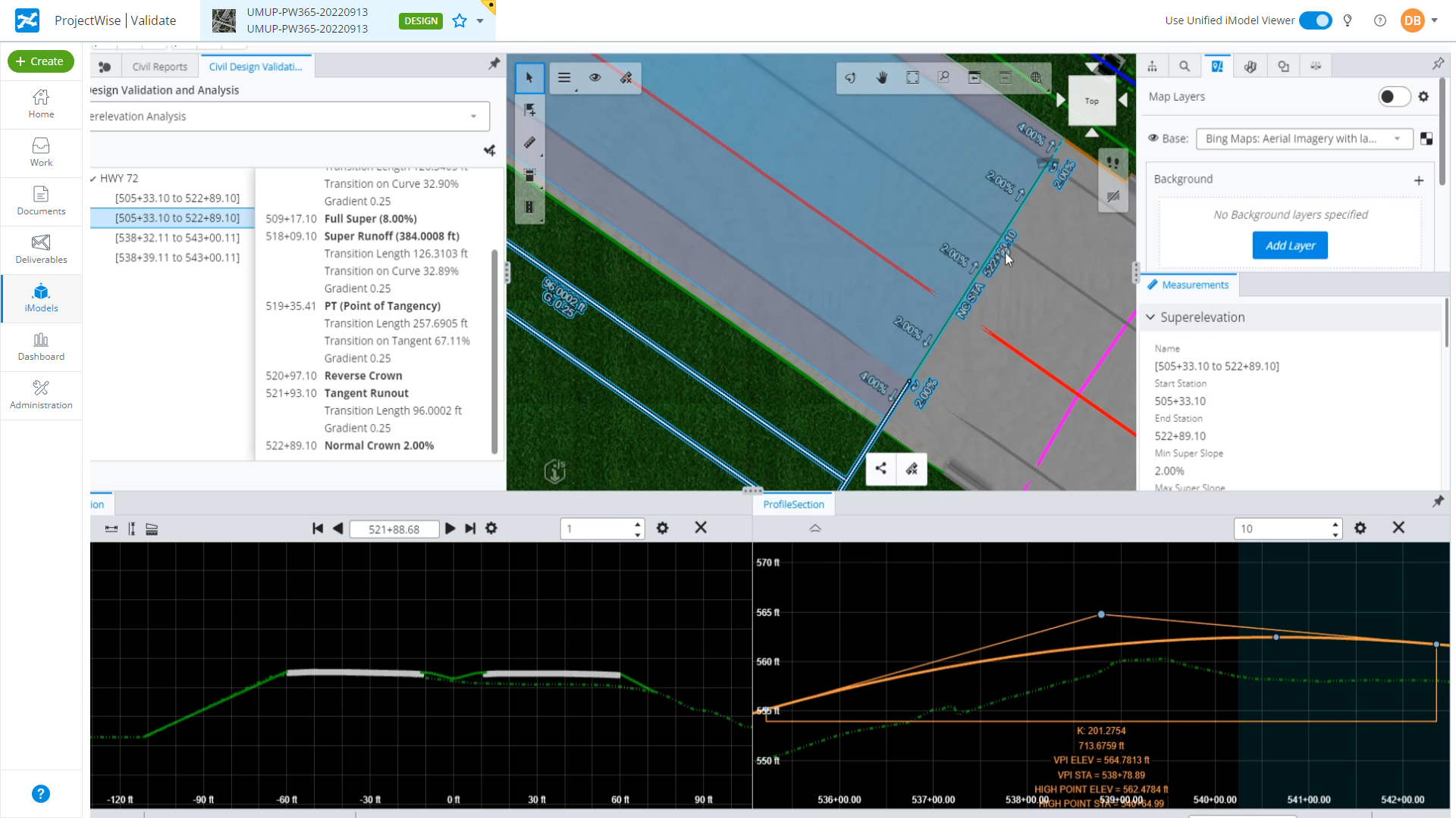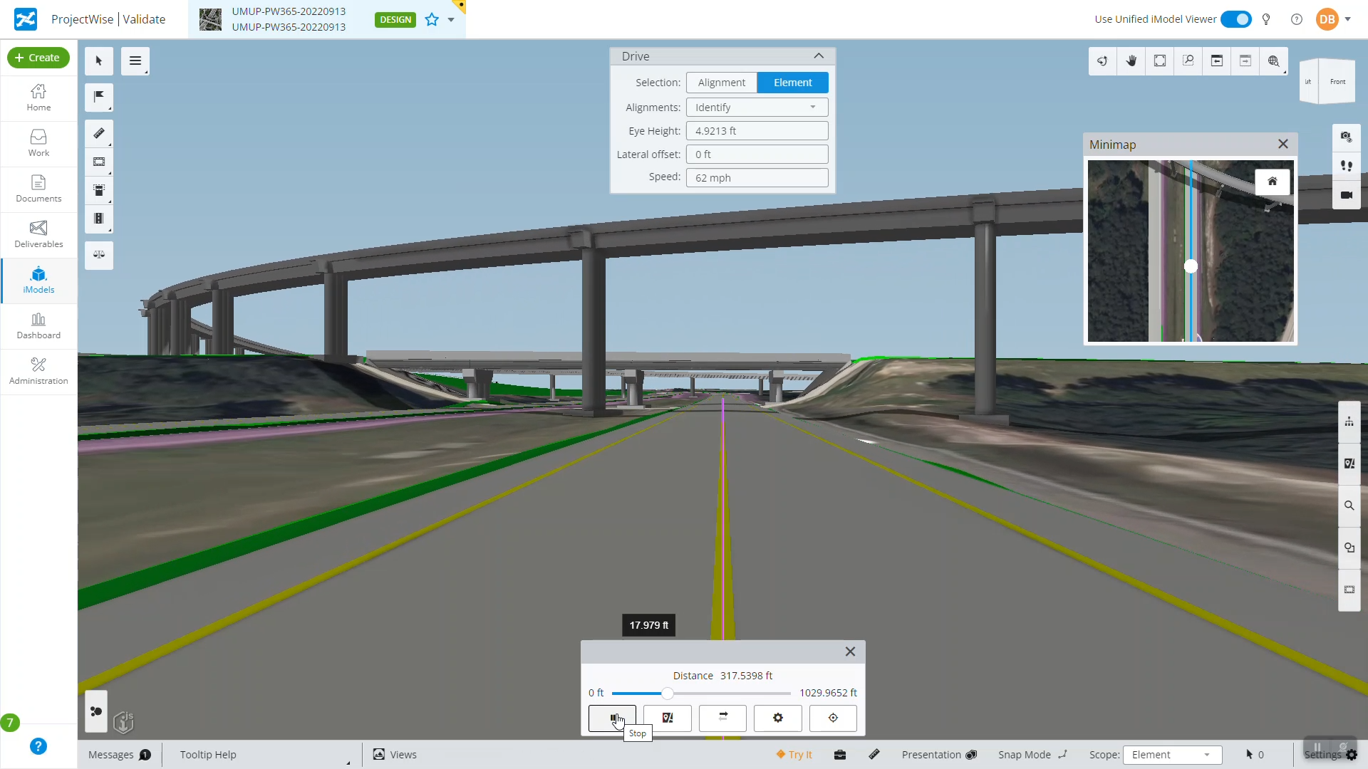 Advanced Design Validation, powered by iTwin, includes 3D digital workflows, integration with Bentley’s OpenRoads and third-party applications, and AI/ML enhanced visualization, enabling simulation of the driver experience to validate designs and assure requirements are met;