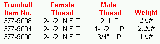 Adapts 2-1/2" National Standard Threads (N.S.T.) to Male Iron Pipe Threads