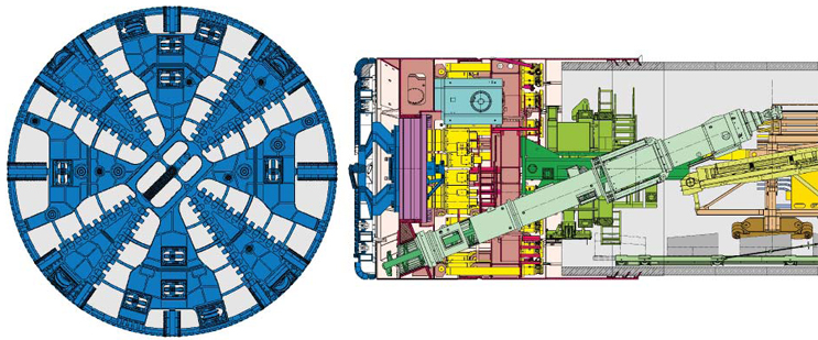 Figure 3. Tunnel boring machine cutting wheel (left) and shield components
