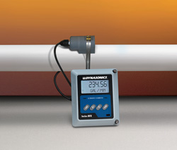 The Series DFX is built on the framework of the highly successful Dynasonics Series TFX transit time ultrasonic flow meter. Features common to the TFX and DFX system include: NEMA 4X [IP66] enclosure, field replaceable isolated output modules, large character backlit LCD, auto-ranging rate display and impedance matched ultrasonic transducer connections. The clamp-on pipe transducer is rated to NEMA 6P [IP68], temperatures up to 400 °F [200 °C] and can be located up to 1,000 feet from the DFX display enclosure. An insertion probe transducer is available for installation on pipe systems that do not permit ultrasound penetration. The DFX system can measure flow on pipe sizes larger than 1/4 inch [6 mm] and flow rates from 0.15 to greater than 30 FPS [0.05 to 9+ MPS].