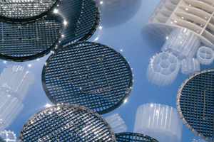 The basis of the HYBAS process is the thousands of polyethylene carrier elements that provide a home for a vast, highly active bacteria culture. These elements are kept in constant motion throughout the entire volume of the wastewater by our specially designed aeration system and sieves, resulting in uniform, highly effective treatment.