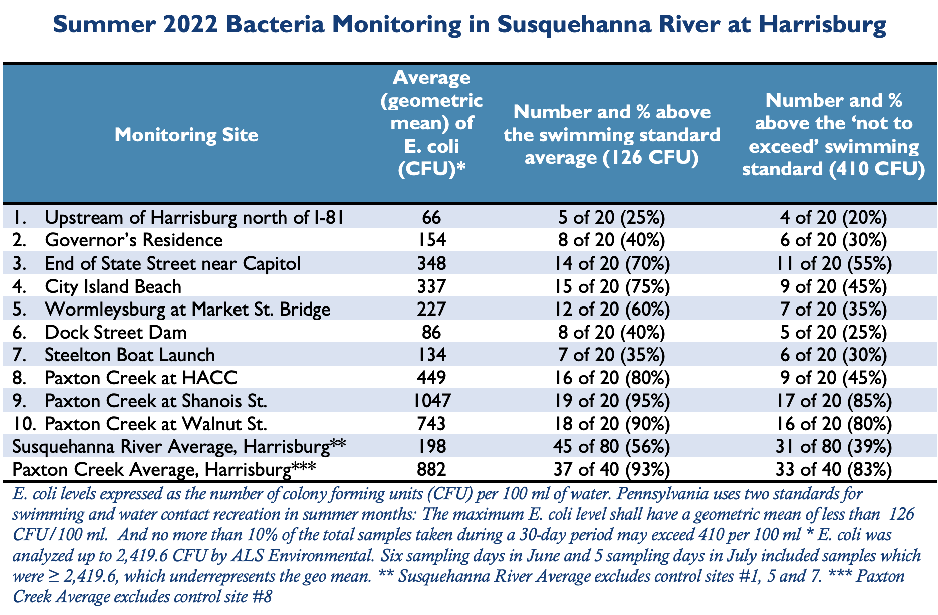 The full results of the Lower Susquehanna Riverkeeper’s 2022 bacteria monitoring are below