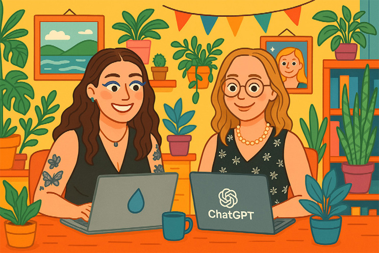 Maci and Mackenzie collaborate on water management solutions using AI tools and StoryMaps, highlighting how technology and teamwork drives innovation in their field.