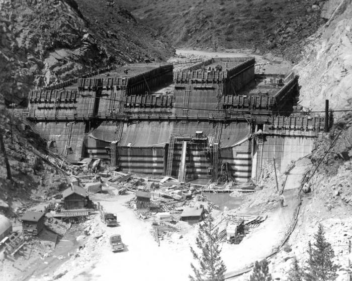 Building the Gross Reservoir Dam in the 1950s. (Credit: Denver Water)