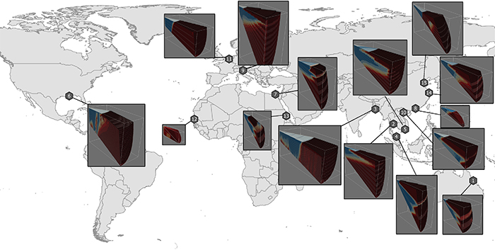 Furthermore, he investigated the sustainability of the fresh groundwater reserves in 15 major deltas across the world. With the current amount of groundwater being pumped, the Ganges-Brahmaputra-Meghna (Bangladesh), Nile (Egypt), Pearl River and Yangtze delta (both in China) risk exhaustion of their precious reserves this coming century. With expected increased pumping rates, the Saloum (Senegal), Mekong and the Red River delta (both in Vietnam) can be added to this list. These seven deltas together currently host hundreds of millions of inhabitants, whose lives might be seriously affected by this groundwater exhaustion.