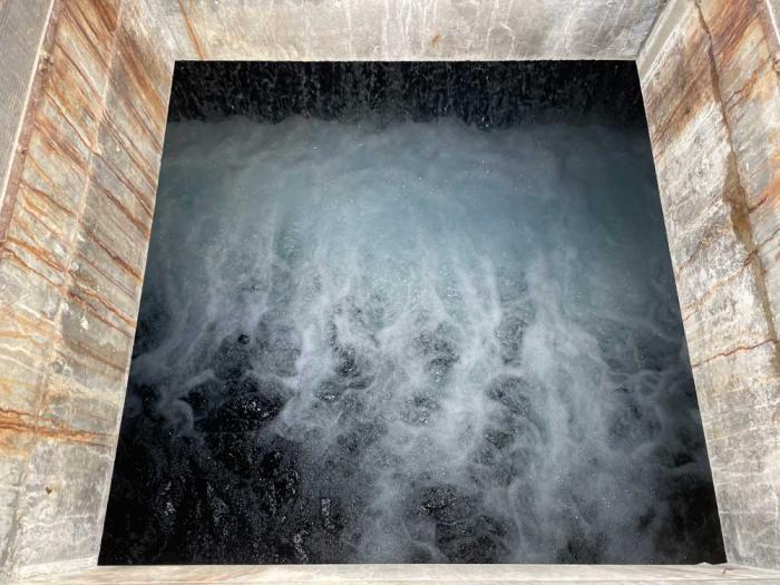 Sodium hydroxide, a common water treatment compound that Denver Water has used since the 1990s to adjust the pH of the water it delivers to customers, is added to the water as it is cleaned at the Foothills Treatment Plant. Photo credit: Denver Water