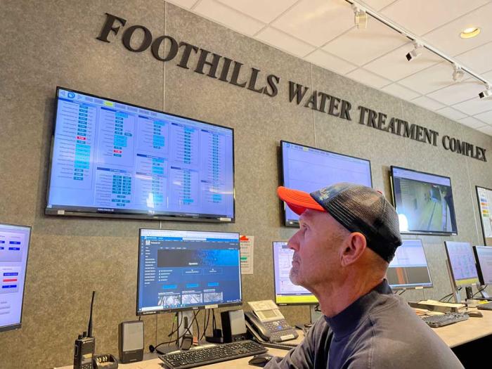 Carlos Quinones, a senior water treatment technician, monitors the water being cleaned at Denver Water’s Foothills Treatment Plant. Photo credit: Denver Water