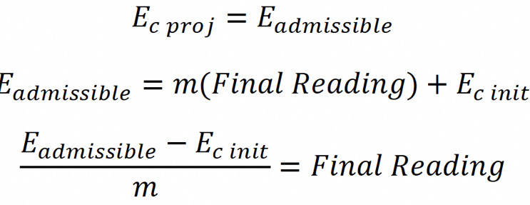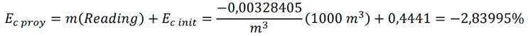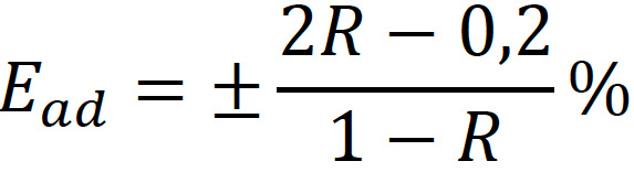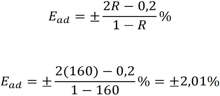 Finally, we proceed to estimate the reading that each prototype will have when its characteristic error reaches the value of the admissible characteristic error. To do this, we use the following formula: