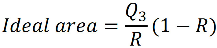 For tests up to flow rate Q3, the Ideal Area will be given by:
