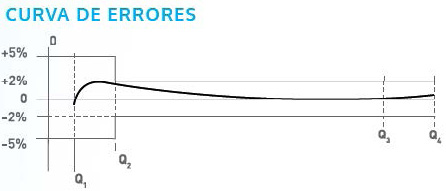 The error curve generally extends from Q1 to Q4, covering possible errors that may occur throughout the meter’s measurement field. In the event that, during the calibration of batches of meters on a test bench, the pressure of the bench is not sufficient to achieve the Q4 flow rate, the error curve will then extend from Q1 to the Q3 flow rate, thus covering all the possible errors up to flow rate Q3. It is then a matter of calculating the area under the curve from Q1 to Q4. If this last flow rate cannot be achieved, then the calculation of the area will be done from Q1 to Q3, in order to use this value as one of the inputs to estimate the metrological quality of a meter.