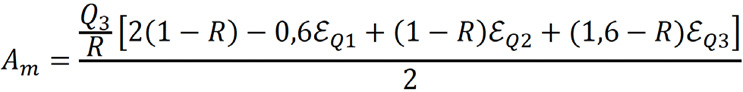 With the points mentioned above that correspond to the error curve and using these equivalences, we calculate the area under the curve for a meter (Measured Area Am), which turns out to be: