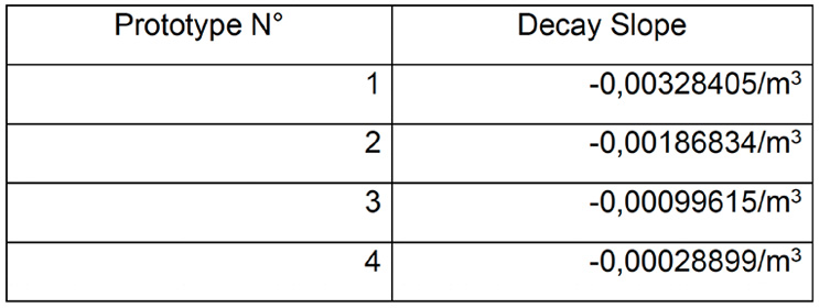 The slope of the accuracy decay curve of each prototype is calculated based on the characteristic errors found and the corresponding readings by applying the formula: