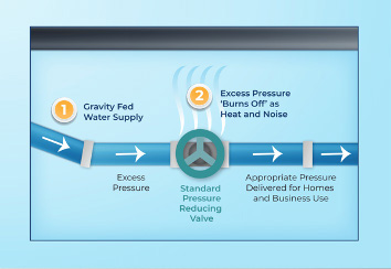 Moving water is energy-intensive. Water utilities and industrial facilities spend an average of 40% of their budget on power — and this cost is rising rapidly alongside the price of energy. At the same time, large water users are constantly managing and regulating water pressure in their systems. Within water distribution systems, water is conveyed across vast networks of pipelines, navigating diverse elevations while maintaining a crucial balance between a minimum operational pressure and avoiding excessively high pressure. To regulate conditions effectively, distribution systems must incorporate pressure-reducing valves that “burn off” excess pressure — turning it into heat, noise, and system wear.