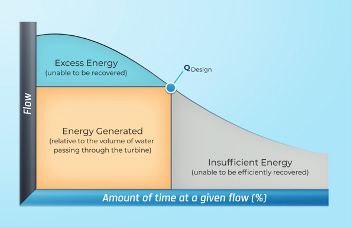 This is because single-speed turbines have a specific efficiency window (design point), regardless of variations in flow or pressure. This creates challenges when operating in variable flows where the hydraulic conditions are not conducive to the design point, and the turbine is not able to optimally or efficiently convert the pressurized water’s potential energy into electric energy. By contrast, the new variable drives modulate the frequency of the generator, ramping the impeller speed up or down to accommodate varying flow and pressure conditions. The pressure control loop aids the process by informing the variable drive how fast or slow to modulate the impeller speed.
