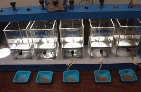 Bench or pilot testing will usually determine whether the selected technologies can meet the discharge limits and may be required or “suggested” by the regulating agencies. These tests can also provide valuable information for estimating full-scale capital and operating costs. Treatment evaluations can range from jar tests performed in a day (Figure 4) to column tests lasting weeks or months.