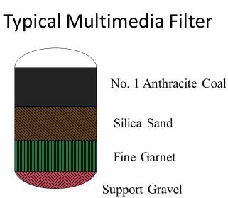 Filtration methods include bag filters, cartridge filters, sand filters, and multimedia filters (Figure 1). Multimedia filters, which typically utilize anthracite coal, sand, and garnet, are probably the most common filters now in use. These filters are pressure vessels that use downflow operation to remove suspended contaminants and a periodic upflow backwash to transfer these contaminants to a waste stream.