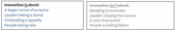 They did this by creating an environment where new ways of thinking could thrive — a culture where high performance became the norm, then innovation became a hallmark of that new norm. As their leadership bucked the status quo, the organization’s collective mindset was reframed in a way that motivated people to take the organization far beyond what they thought was possible. A culture which fosters innovation is one where a larger sense of purpose is constantly motivating people.