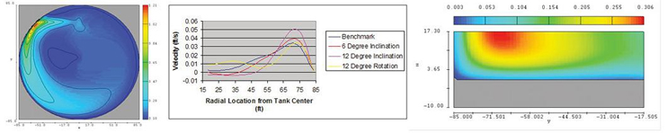 Primary and secondary settling tanks rely on uniform, plug-like flow conditions to provide for settling of solids and skimming of floatables. CFD models of settling tanks typically include the influent channel, the settling chamber, and the effluent channel. A CFD model with strong free-surface capabilities is again required to accurately model this system component, as small changes in water surface elevation and weir flow can significantly impact the performance of the tank. CFD modeling of settling tanks will advance the design process by: