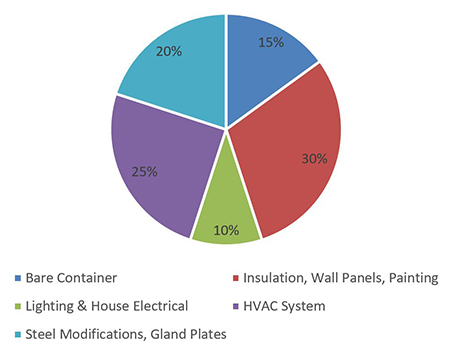 An example cost breakdown, provided by an industry leading container manufacturer, for a given a container project is as follows: