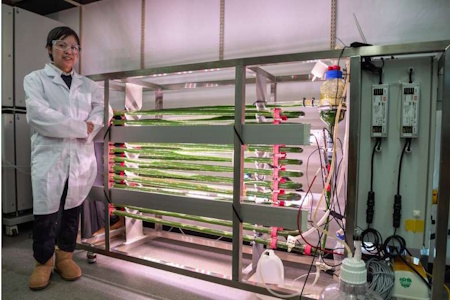 The specially engineered algae can grow in wastewater, feeding on excess nutrients and cleaning the water as it grows.