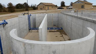 Oxidation ditches have traditionally been mixed and aerated with surface mounted equipment such as brushes, rotors or slow speed aerators. Surface mounted equipment typically requires a shallow basin depth to maintain complete mix and reasonable oxygen transfer efficiency and can take up a large footprint. Jet aeration systems are just the opposite. Jets are mounted to the basin floor and rely on water depth and bubble residence time to achieve a high level of oxygen transfer efficiency. Ditch depths can range from 12’ to as high as 24’, maximizing oxygen transfer, greatly reducing footprint, and resulting in construction cost savings. Additionally, independent control of mixing and aeration allows for complete mix in the ditch, while varying blower speeds control dissolved oxygen levels.