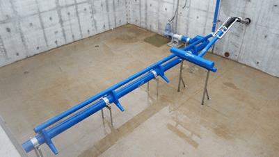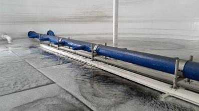 One of the main characteristics of equalization tanks is operation in a fill and draw mode, which creates varying water levels and makes mixing and aeration challenging. Jet aerators are mounted close to the tank floor (typically 1.5’ above the floor) to allow for effective mixing with only a few feet of water in the tank. Arrangement of jets varies based on size and geometry, but in all cases, they are configured so mixing energy reaches all areas of the tank (even at low water levels). An added benefit is that the FRP and stainless-steel components are not damaged or degraded when exposed to extreme temperatures and sunlight, so the EQ tank can remain emptied for extended periods of time. Parkson offers both jet aerators and jet mixers for EQ tanks. The jet mixing nozzles are designed to mix only and do not provide aeration.