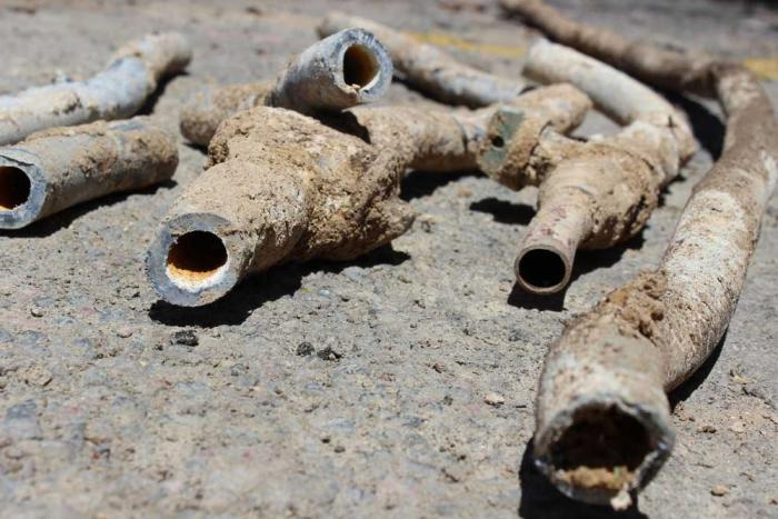 Pieces of lead service lines installed by builders decades ago. Denver Water is replacing lead service lines with new, lead-free copper lines at no direct charge to the customer. (Photo credit: Denver Water)