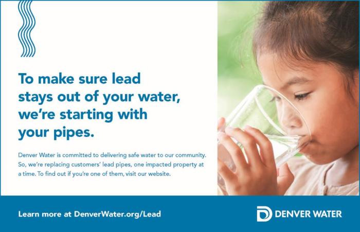 The public education campaign for the Lead Reduction Program has included print and digital advertising, virtual community meetings and in-person events. Image credit: Denver Water.