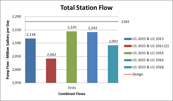 - The highest Unit 1 flows (from 2015) were added to all of the Unit 2 tests (2013, 2014, 2016, 2018) for total station flow