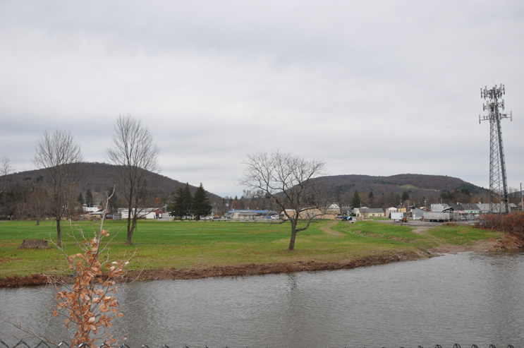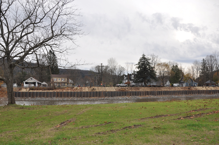 After photo. The West Branch Delaware River and completed South Street Bank Restoration Project in the Town of Walton, as seen from the Walton floodplain. (Credit: JoAnne Castagna, public affairs)