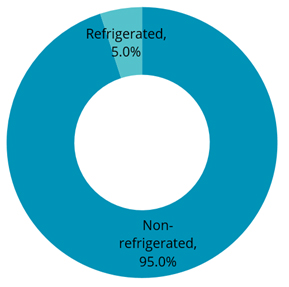 In 2021, direct sales was the most popular sales channel in the North American Outdoor Drinking Fountains Market, followed by online sales. An estimated 95% of sales by revenue in 2021 were from non-refrigerated units. The chart below highlights market share, by revenue, by refrigeration, for 2021. Additionally, most of the revenue was generated from replacement units versus newly constructed units. Free-standing units are more popular as compared to wall mounted units.