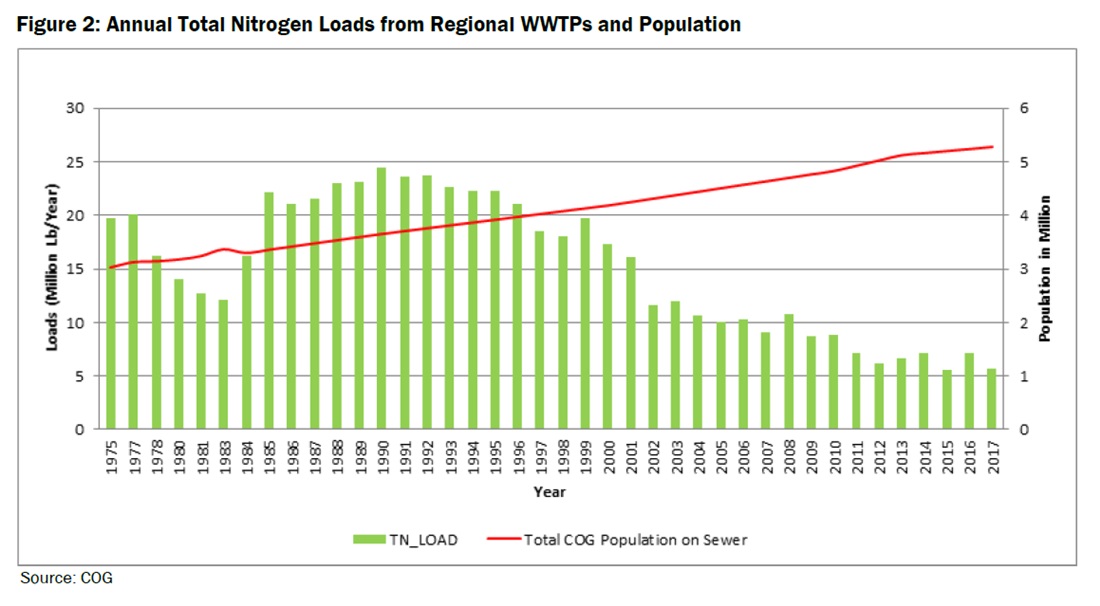 Investments in and actions by the region’s wastewater treatment plants largely account for this significant progress, supporting increases in jobs and population while improving Potomac water quality.