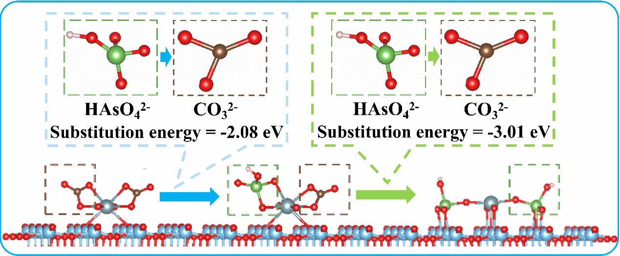 Using in situ ATR-FTIR spectroscopy and density functional theory (DFT) calculations, the researchers identified the formation of a ternary surface complex, [Ti–U(VI)–As(V)], as the critical mechanism. In this process, arsenate ions displace carbonate ligands in uranyl-carbonate complexes adsorbed on TiO₂, forming a stable ternary structure that facilitates co-removal of both pollutants.