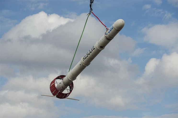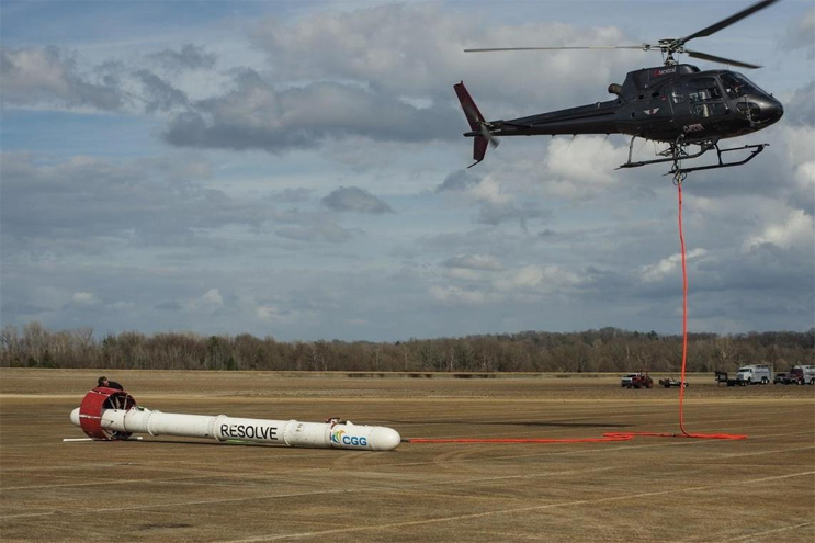 CGG RESOLVE helicopter system in Greenwood, Mississippi. The USGS is working with CGG and other partners to gather geophysical information related to the Mississippi Alluvial Plain. The helicopter will be deployed in several smaller focus areas of interest where a series of high-resolution survey grids will be acquired. (Credit: Burke Minsley, USGS. Public domain.)