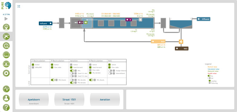 In 2016, Water Authority Vallei en Veluwe implemented Aquasuite Pure, an APC by Haskoning, on both lanes of its WWTP Apeldoorn, incorporating various controllers for aeration and internal recirculation.