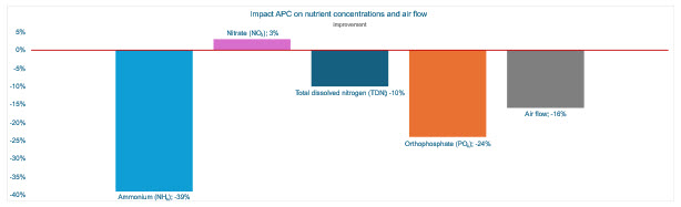 And that’s not the only benefit WWTP Apeldoorn measured. With the APC in operation, total dissolved nitrogen, orthophosphate, and energy consumption were approximately 8%, 22%, and 8% lower, respectively, compared to when the APC was not in operation.