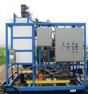 The tangential flow separator system is designed to add the necessary amount of coagulants/flocculants in order to aggregate the waste stream to an acceptable degree. This is affected by an air-driven mixer that injects the flocculant stream concurrently by mixing it into the waste stream. This mixer can be adapted to deliver any surface charge necessary to effect coagulation/ flocculation. Exactly how and at what step prior to filtration depends on the nature of the waste stream, as well as the physical parameters such as velocity, temperature, and particulate charge on the suspended particulates within the waste stream.