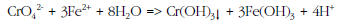 RCF is a multi-step treatment process in which Cr(VI) is converted to Cr(III), and the Cr(III) is then removed by filtration. Specifically, ferrous iron (Fe(II)) in the form of ferrous sulfate or ferrous chloride is used to reduce Cr(VI) to Cr(III). At moderate pH, the Cr(III) precipitates as chromium hydroxide, Cr(OH)3 by the following partial reaction: